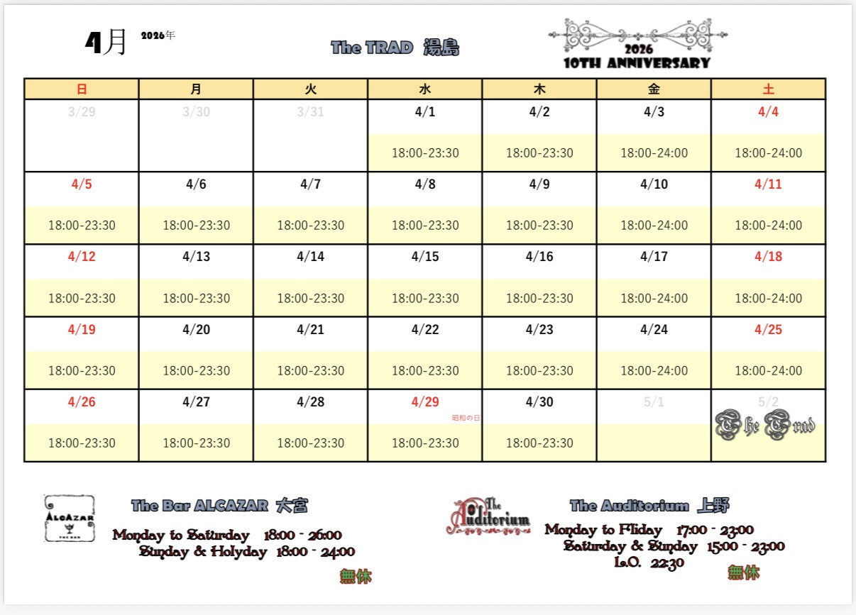 【2026.4月営業日のお知らせ】